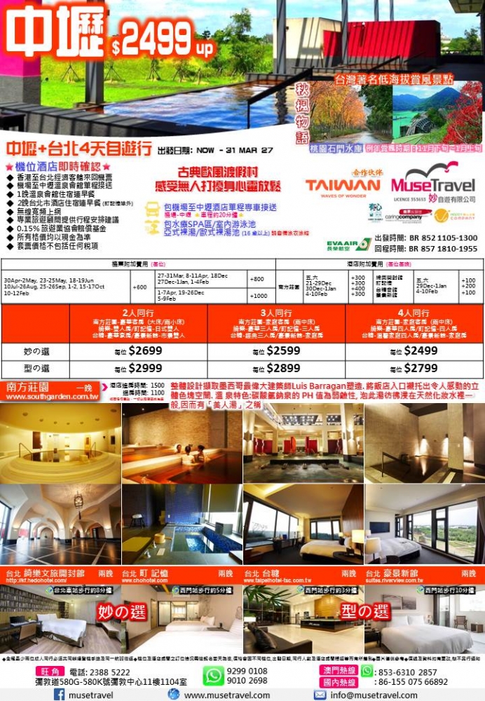 ◆ 2晚台北市酒店住宿連早餐 (町記憶除外)
