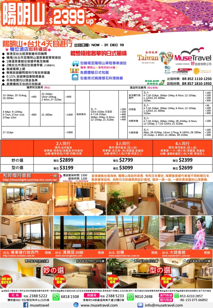 ◆ 2晚台北市酒店住宿連早餐 (大師除外)