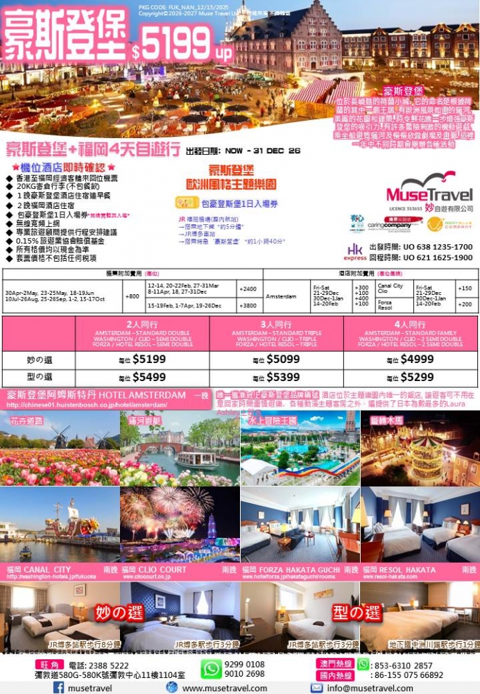 ◆ 1 晚豪斯登堡酒店住宿連早餐