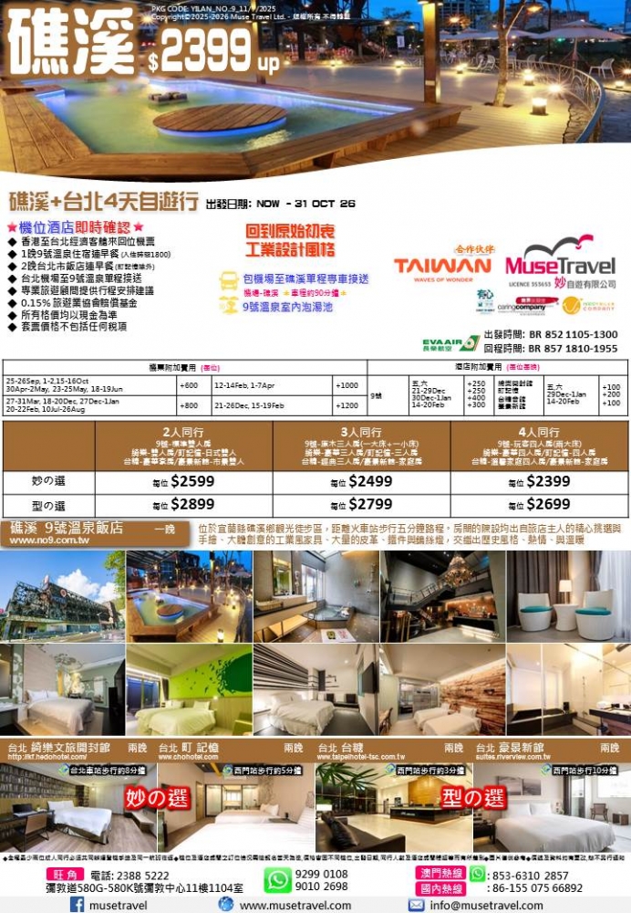 ◆ 1晚9號溫泉住宿連早餐 (入住時間1800)
