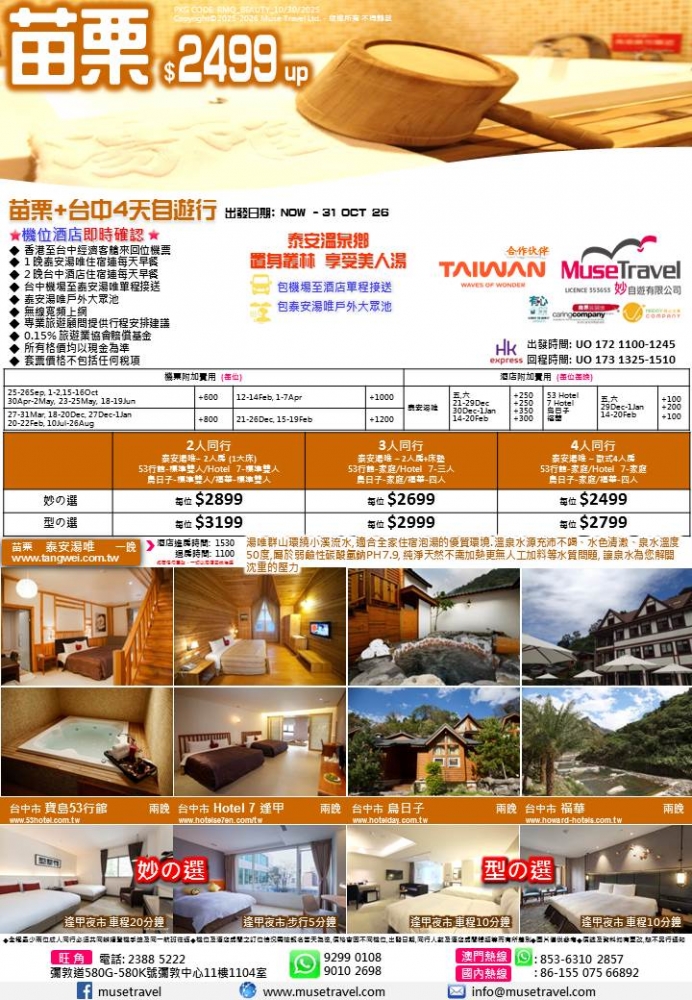 ◆ 1 晚泰安湯唯住宿連每天早餐