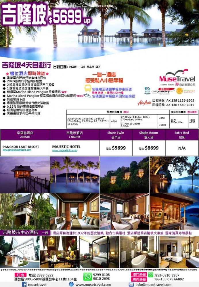 ◆ 香港至吉隆坡經濟客艙來回位