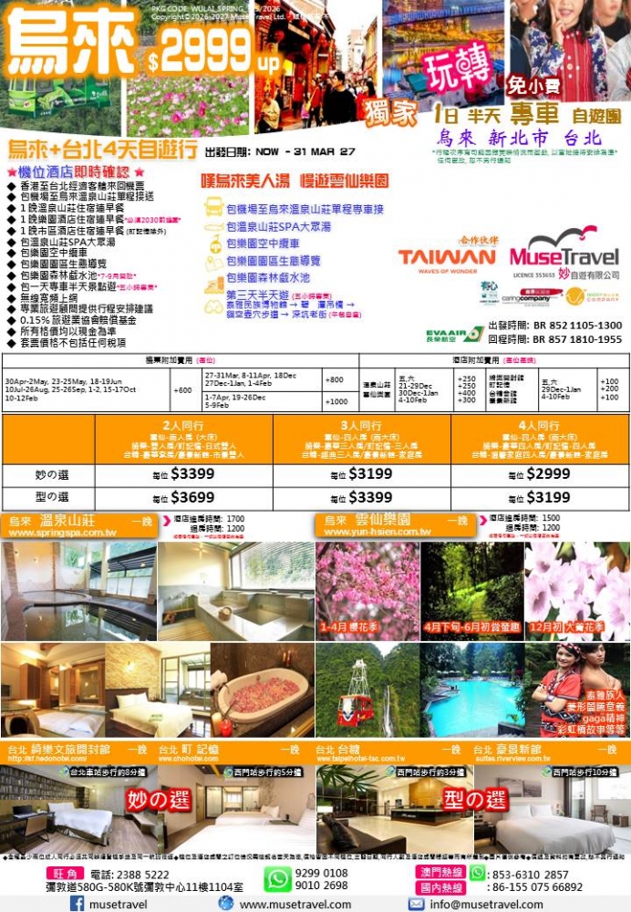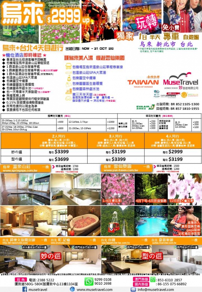 烏來+雲仙樂園-嘆烏來美人湯 慢遊雲仙樂園 獨特文化自遊團之旅