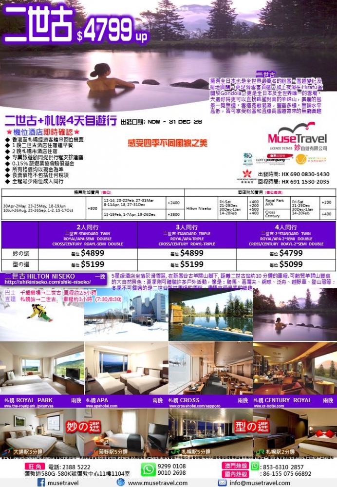 ◆ 香港至札幌經濟客艙來回位機票
