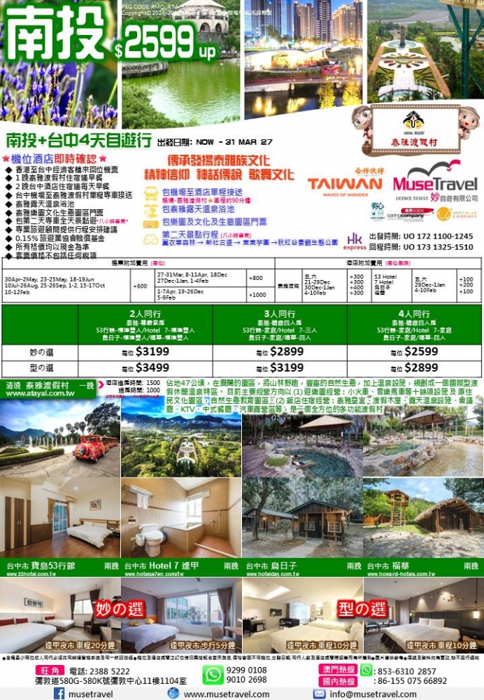 ◆ 台中機場至泰雅渡假村單程專車接送