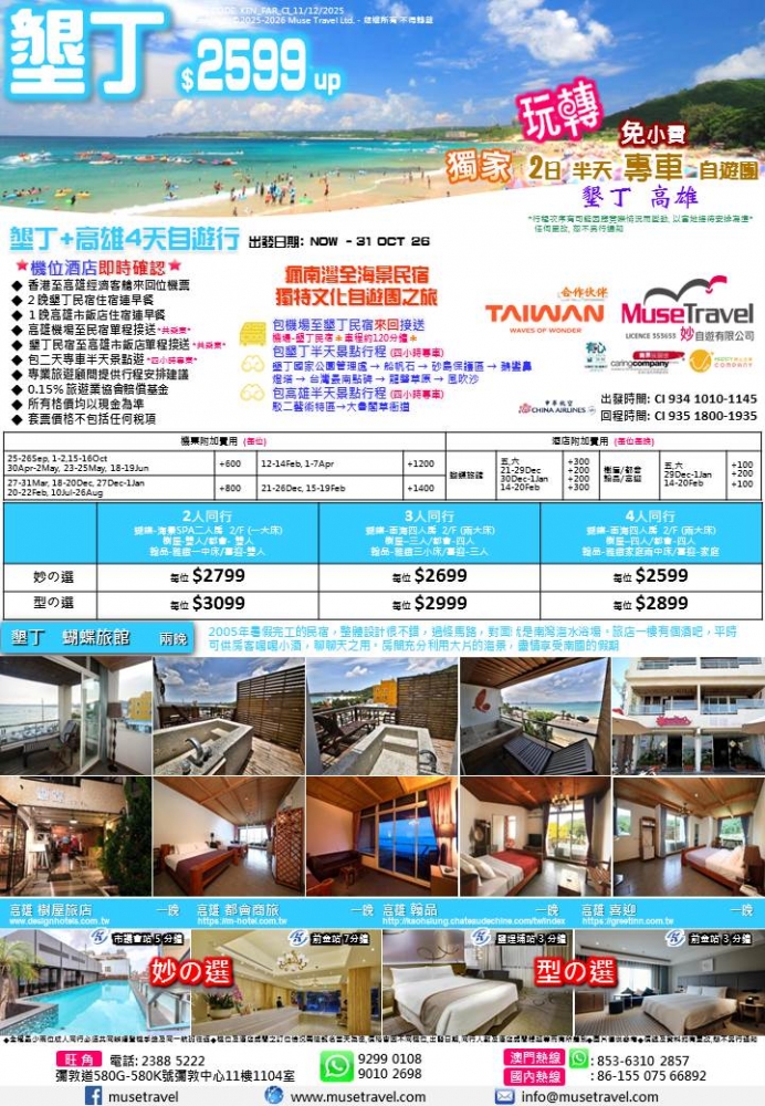 ◆ 墾丁民宿至高雄市飯店單程接送 *共乘車*