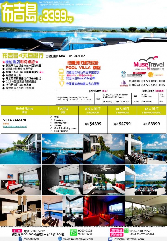 ►5 Bedroom ►無線網路 ►專屬管家廚師傭人貼心服務 ►免費泊車 ►海景 ►無邊際泳池