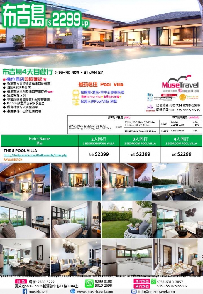 ◆ 機場至泳池別墅來回專車接送 *專車*