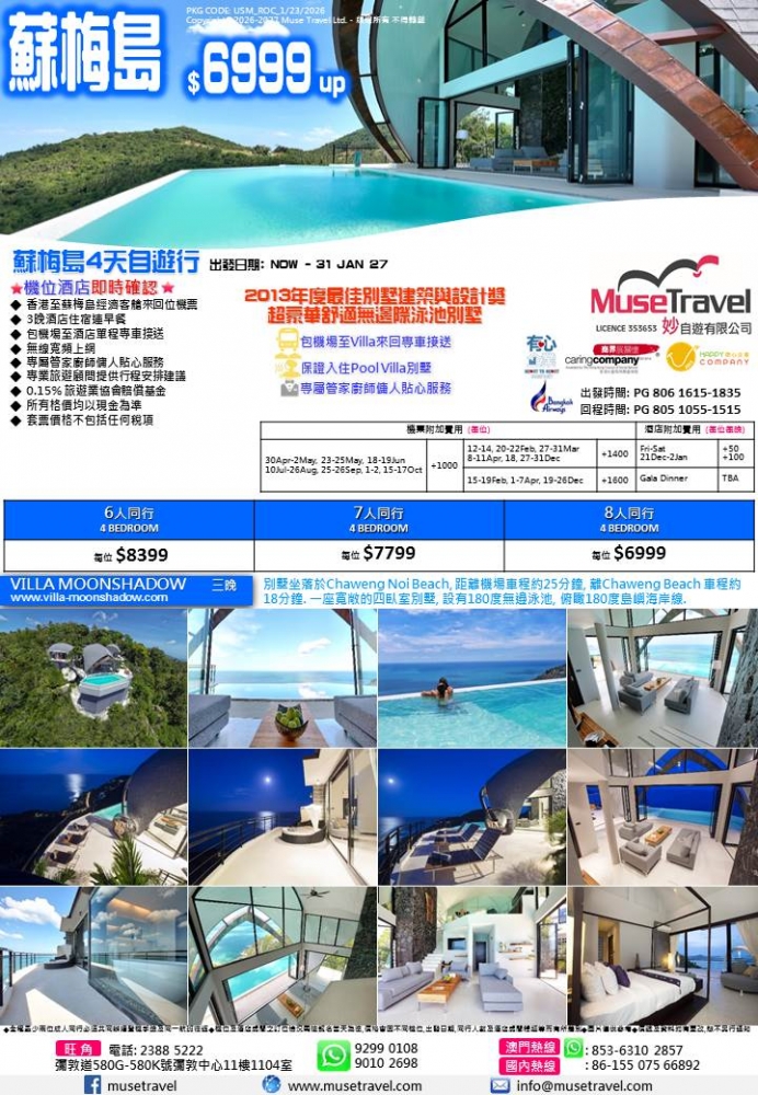 ►4 Bedroom ►無線網路 ►專屬管家廚師傭人貼心服務 ►免費泊車 ►海景 ►無邊際泳池 ►戶外燒烤