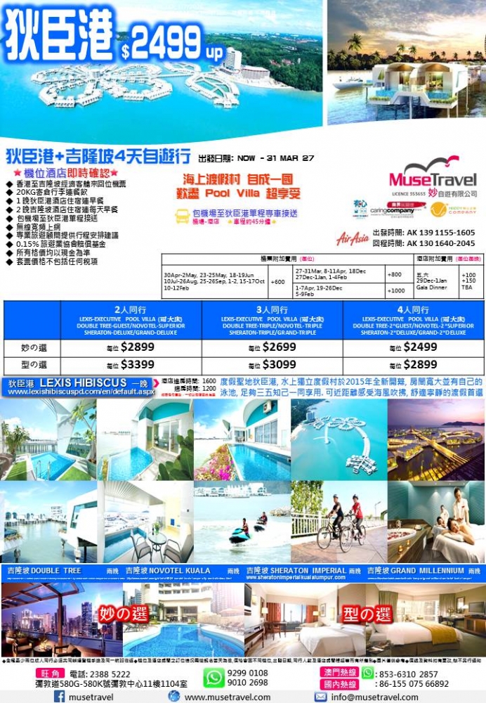 ◆ 香港至吉隆坡經濟客艙來回位機票