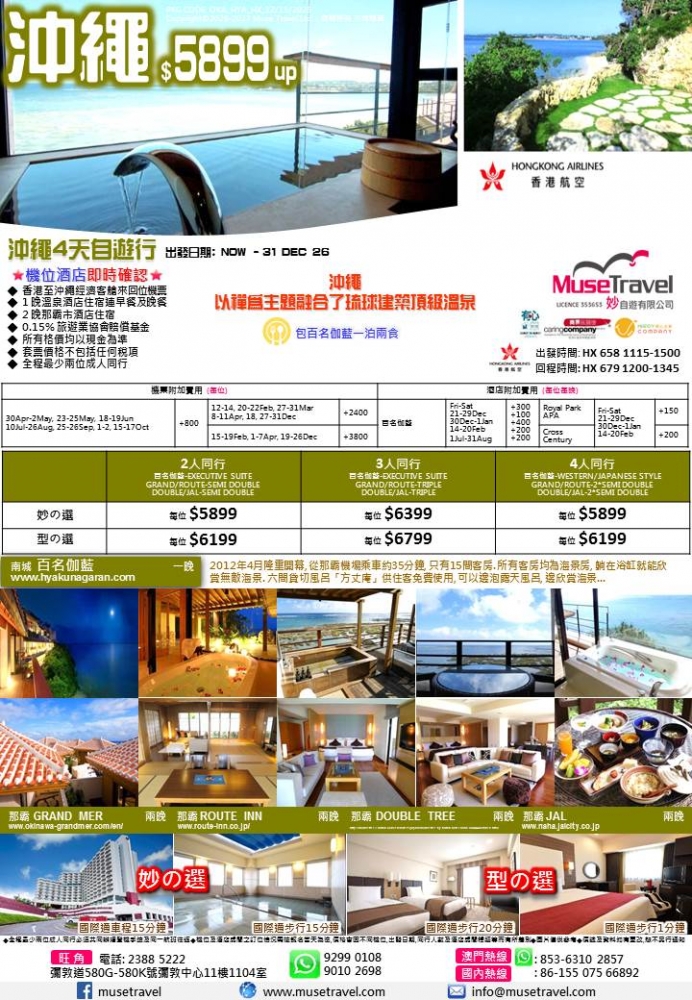 ◆ 香港至沖繩經濟客艙來回位機票