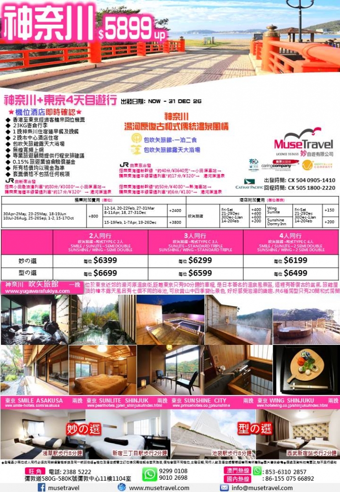◆ 1 晚神奈川住宿連早餐及晚餐