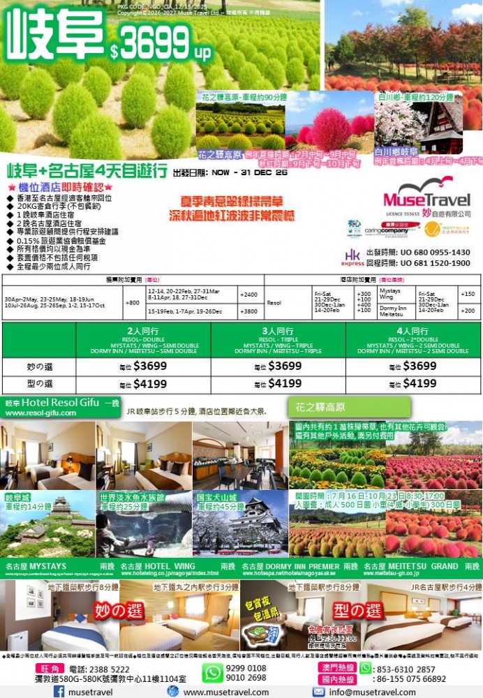 ◆ 香港至名古屋經濟客艙來回位