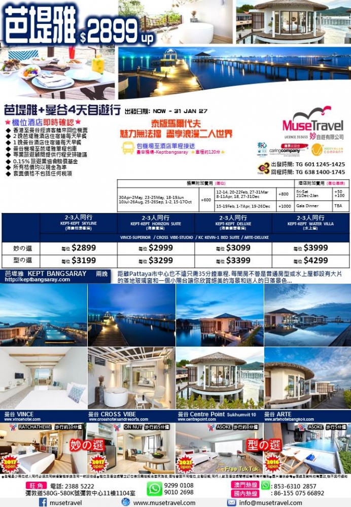 ◆ 2 晚芭堤雅酒店住宿連每天早餐