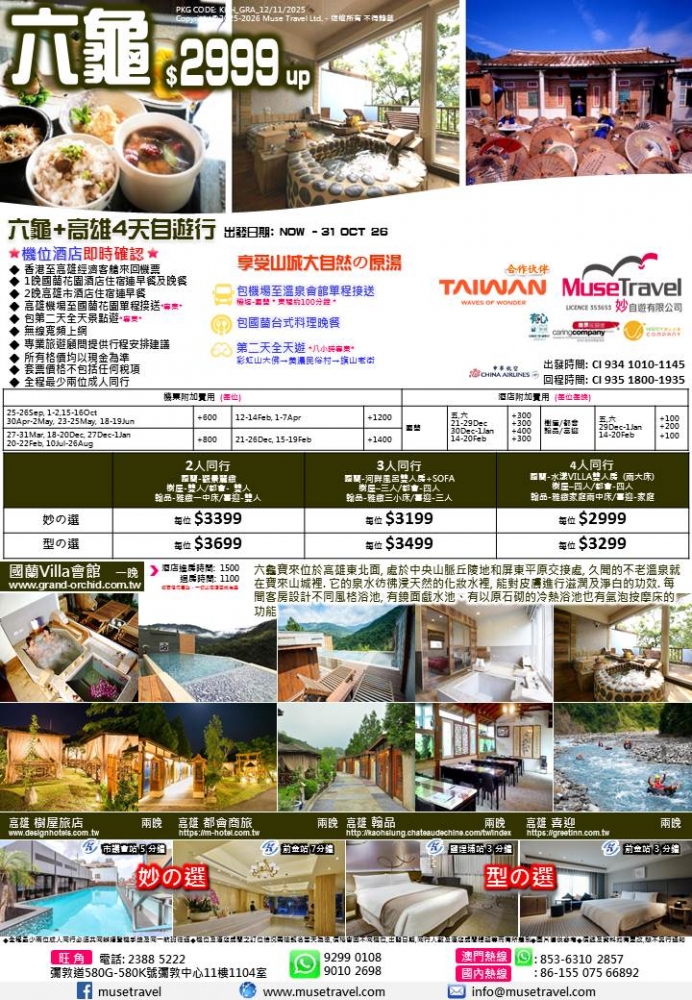 ◆ 全程最少兩位成人同行