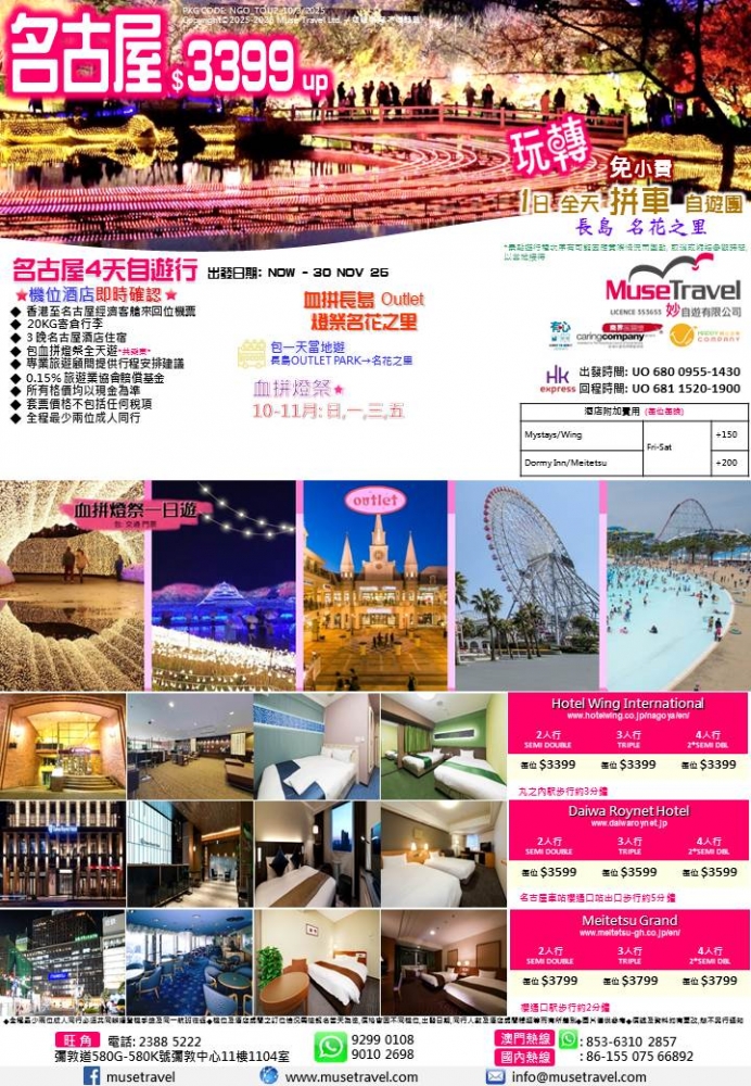 ◆ 3 晚名古屋酒店住宿