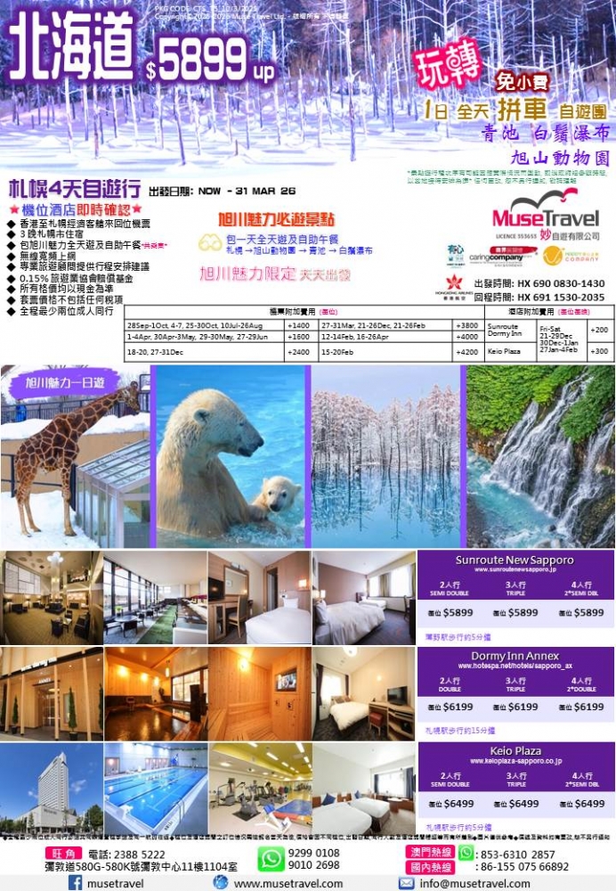 ◆ 包旭川魅力全天遊及自助午餐*共乘車*